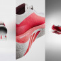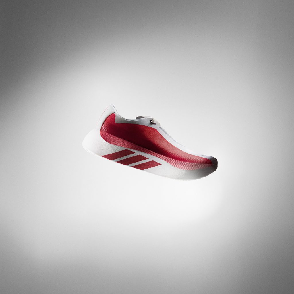 La entresuela presenta una forma inflada y volumétrica inspirada en estructuras industriales, mientras que por primera vez en un modelo de running de adidas las tres franjas aparecen integradas en la entresuela, destacando la tecnología bajo el pie.