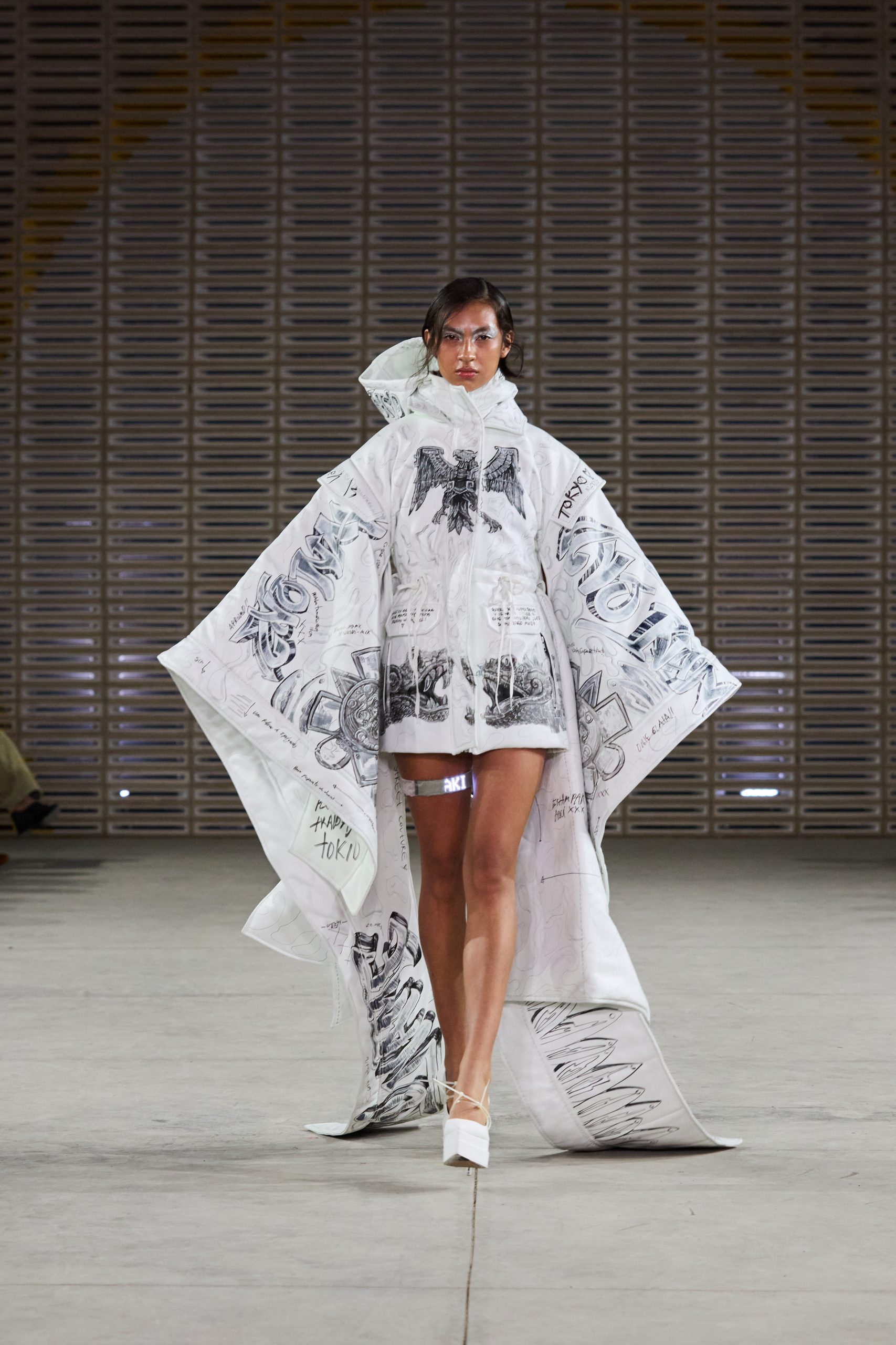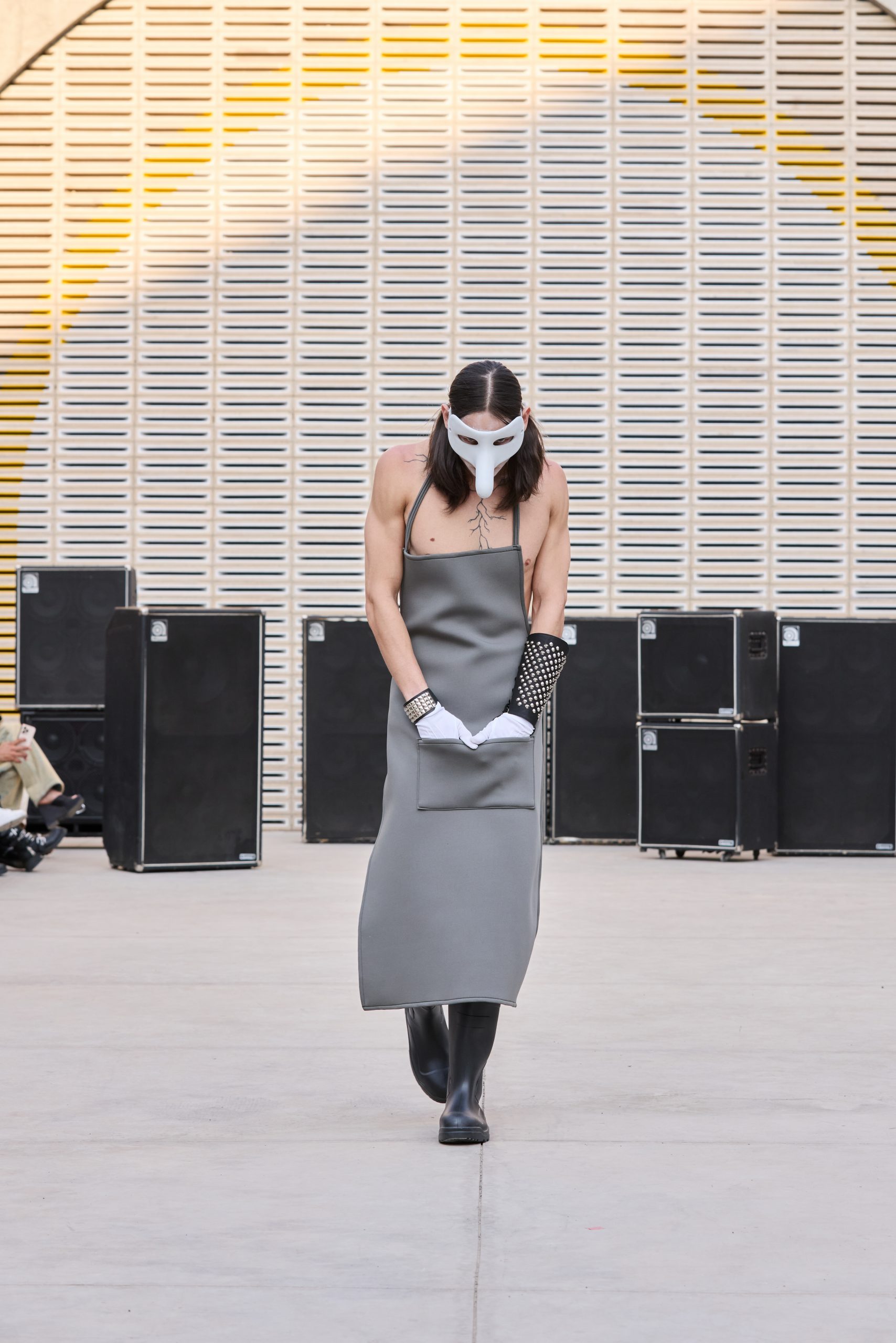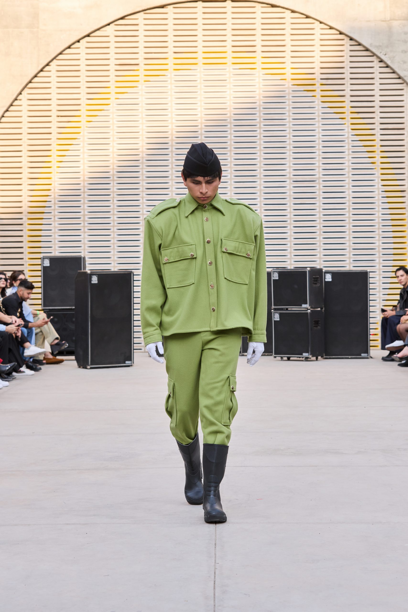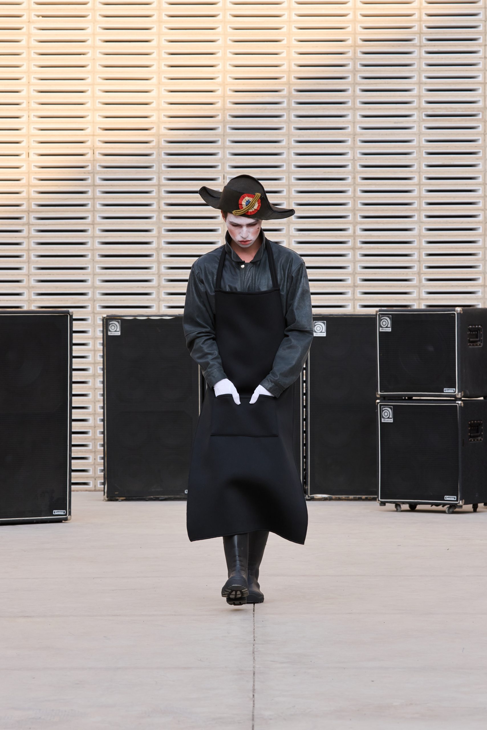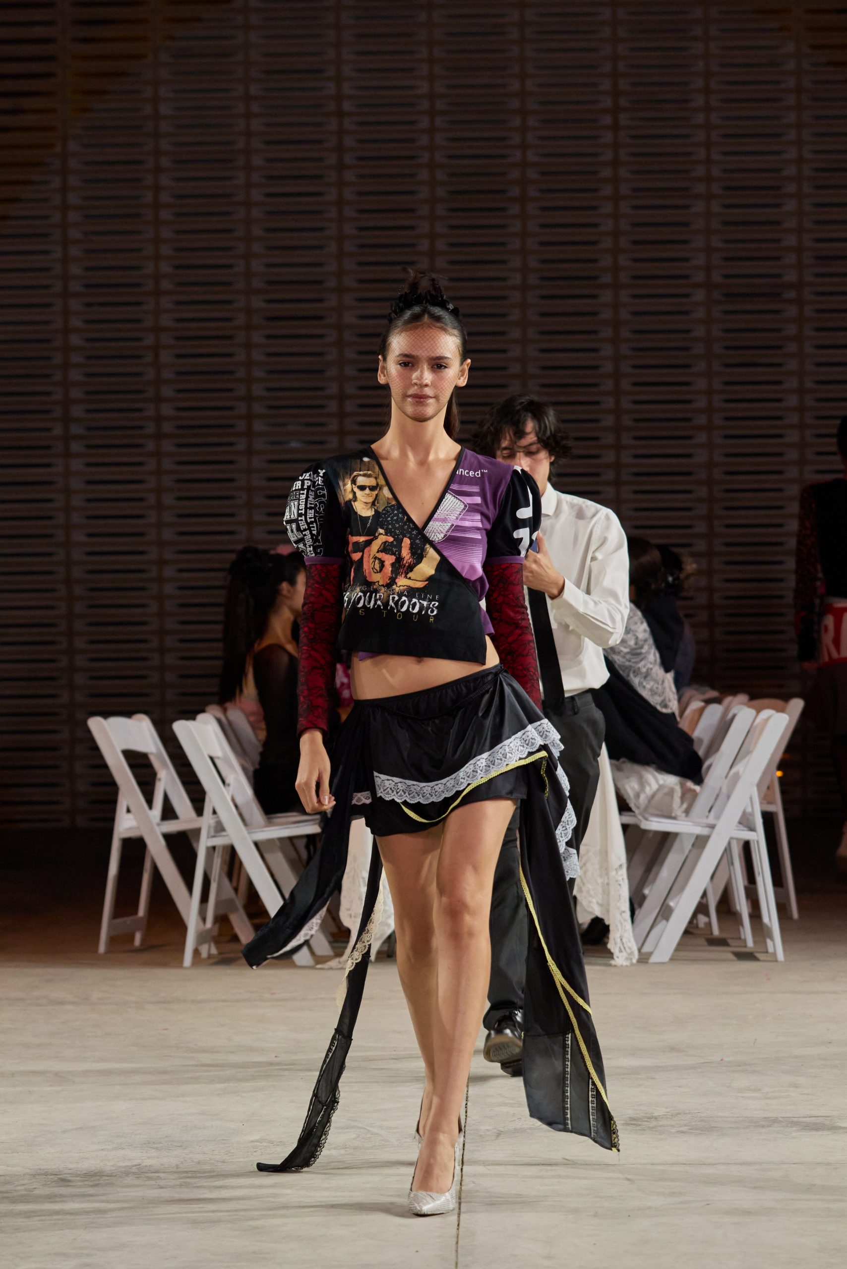 La colección se plantea como un debate en movimiento: prendas que dialogan entre sí desde la contradicción y la libertad. Sedas vintage intervenidas, hoodies, túnicas y piezas en piel construyen un guardarropa que recupera la energía del adolescente inconforme, transformándola en un statement sofisticado y global.